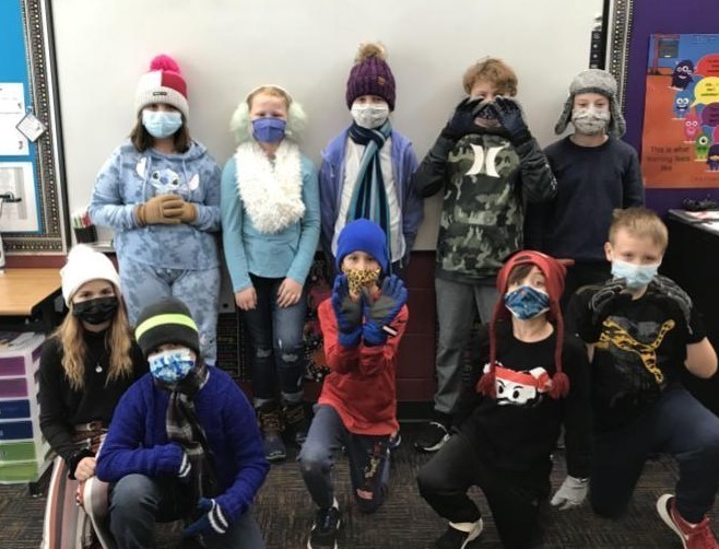 Monday brought about Day 5 and lots of hats, scarfs and mittens for "Baby, It's Cold Outside Day". Below are a few pictures from the day: