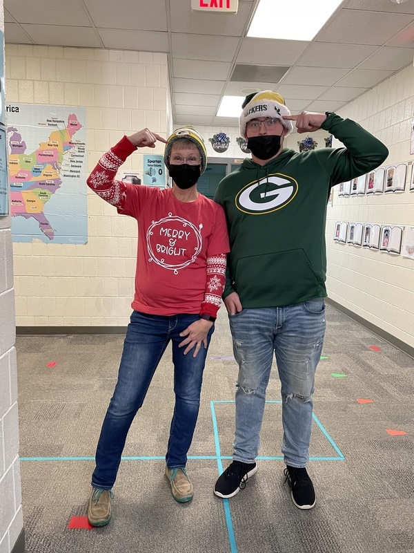 "Clash of the Holiday Colors" was Day 6 and each grade level was assigned a different color to wear. All of the buildings were a rainbow of colors for the day! Below are pictures of a class assigned the color yellow and some of our transportation department staff who joined in with wearing black/school bus yellow for the day!